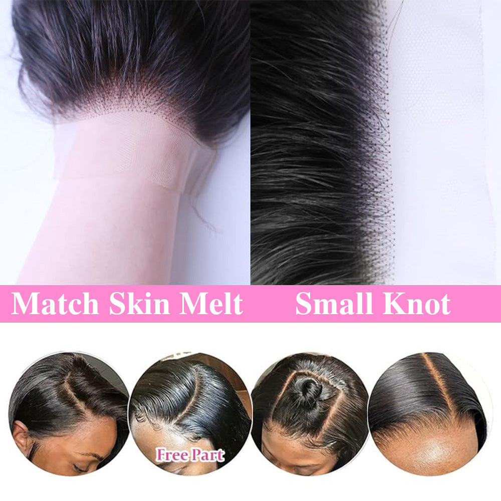 【Invisible HD Lace】: HD Lace is invisible and undetectable, which can melt into your skin perfectly and match all skin tones, Handmade human hair closure