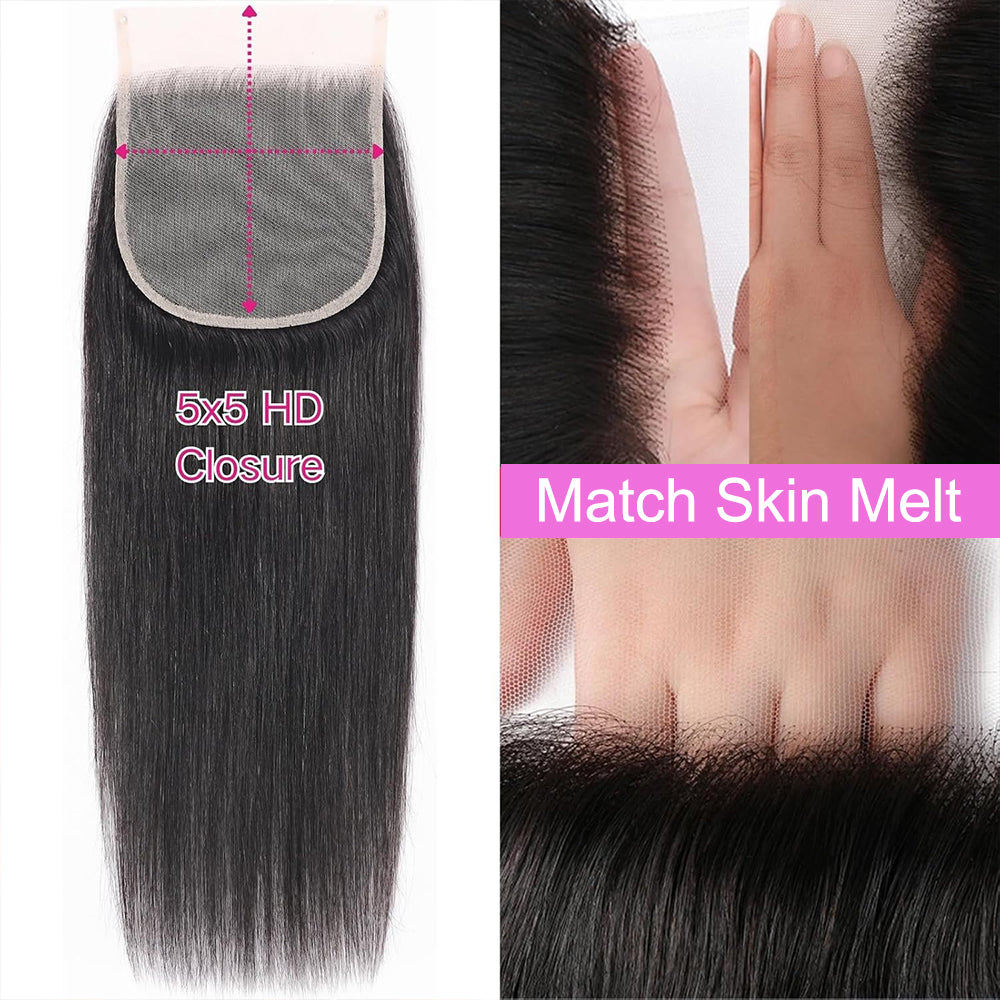 【Invisible HD Lace】: HD lace is invisible and undetectable, which can melt into your skin perfectly and match all skin tones, Handmade human hair closure.