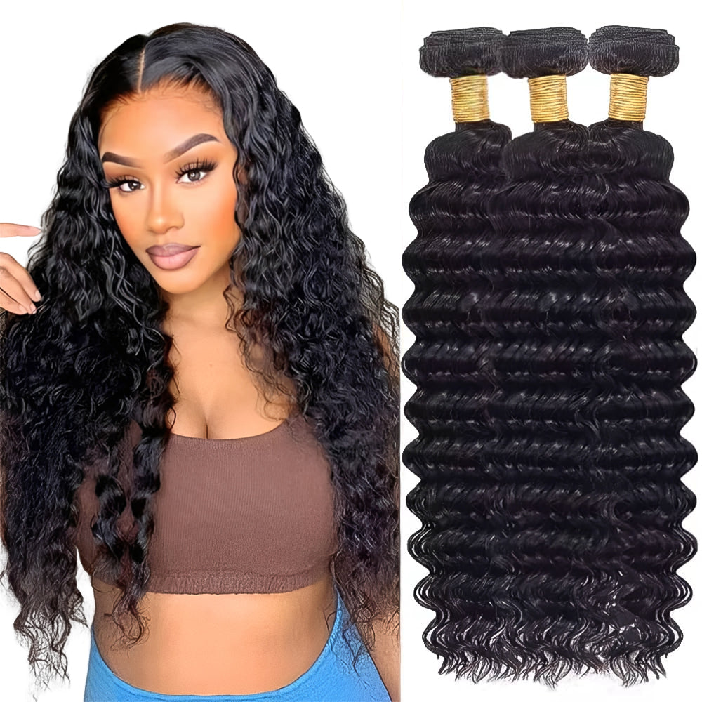 Deep curly bundles hair weight and length: deep wave bundles 95 g/bundles, full weight and true to length, full cuticle aligned, high elasticity and bouncy, tight and neat