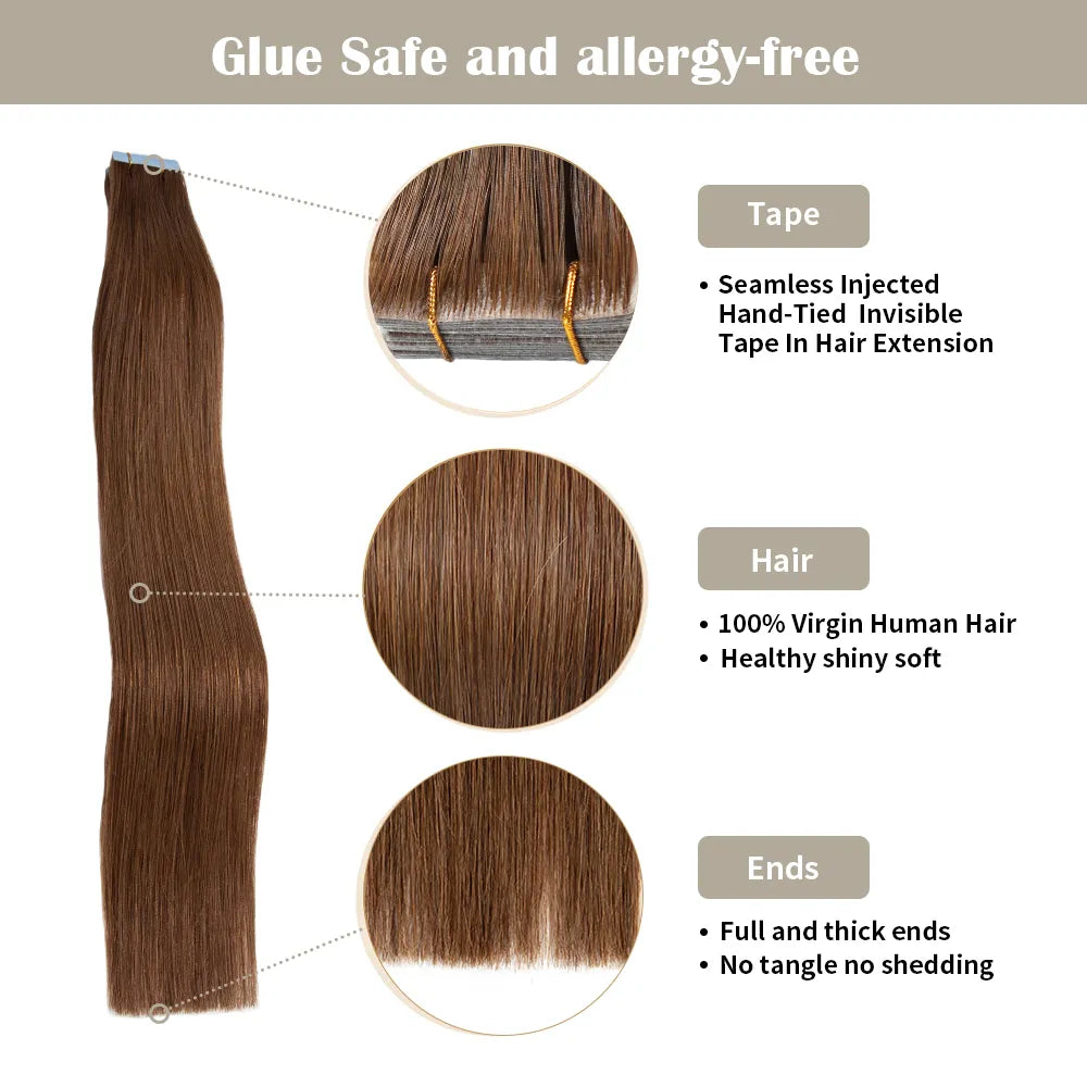 Jessie's Wig 16 Inch 40g 18-26 Inch 50g Tape In Hair Extensions For Women Thin Hair Straight #6 20 Pcs/Pack