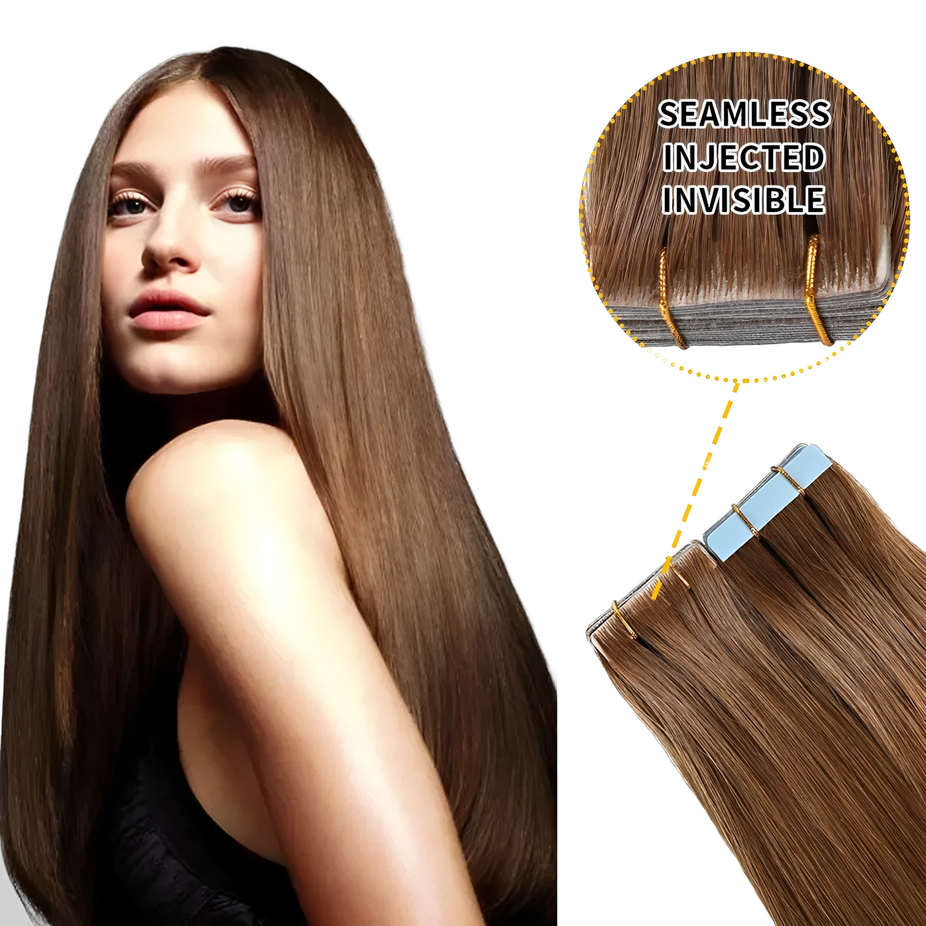【Invisible and Safe】The tape in hair extensions utilize strong invisible tape that is hypoallergenic and waterproof; it can be reapplied and is completely invisible; each pack comes with replacement tape. Natural tape will not damage your scalp or harm your hair