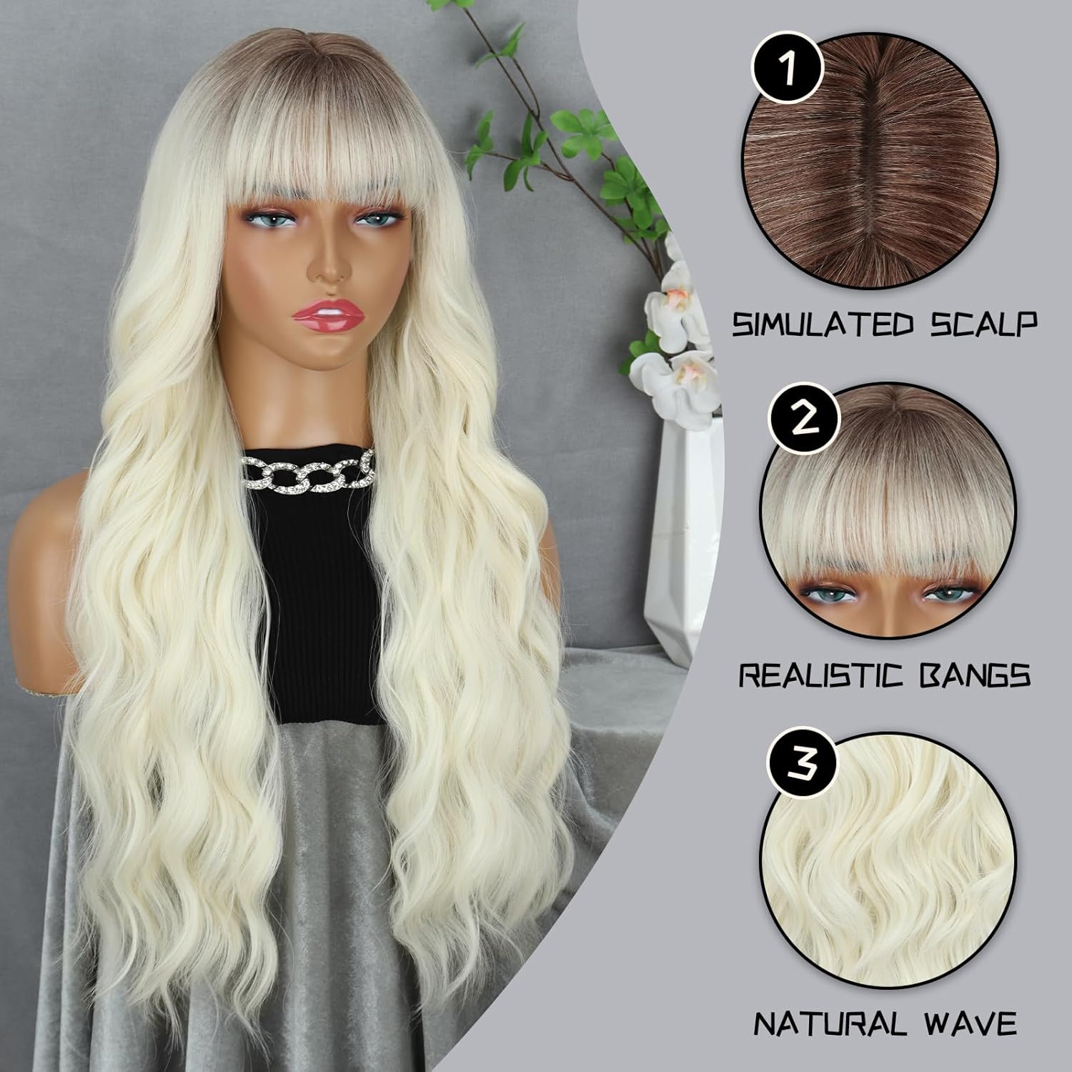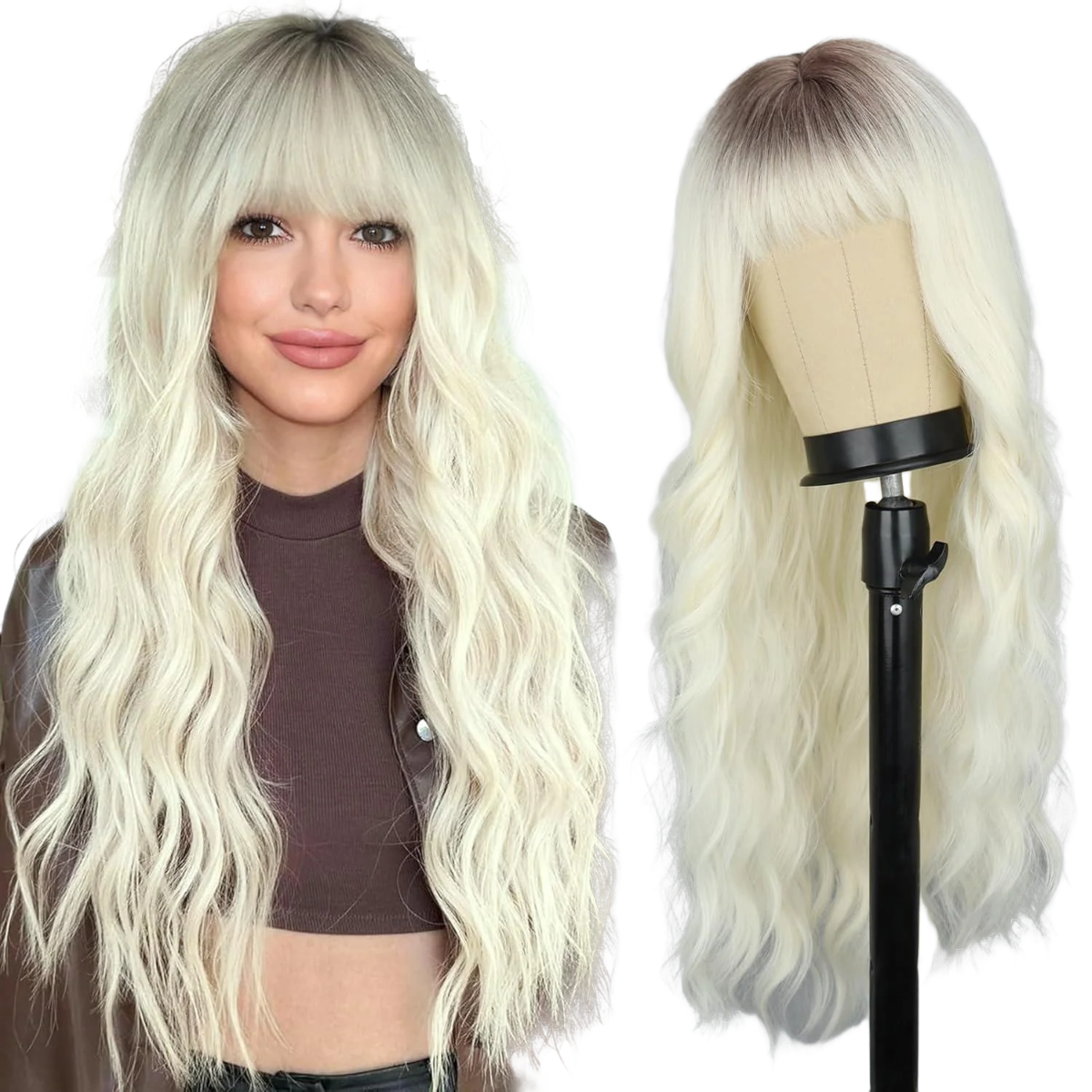 • 【Premium Synthetic Wig】The Wavy wigs for women is made of high quality heat resistant synthetic fiber which is very soft and silky.You don’t need to dyed your own hair to get a beauty style.