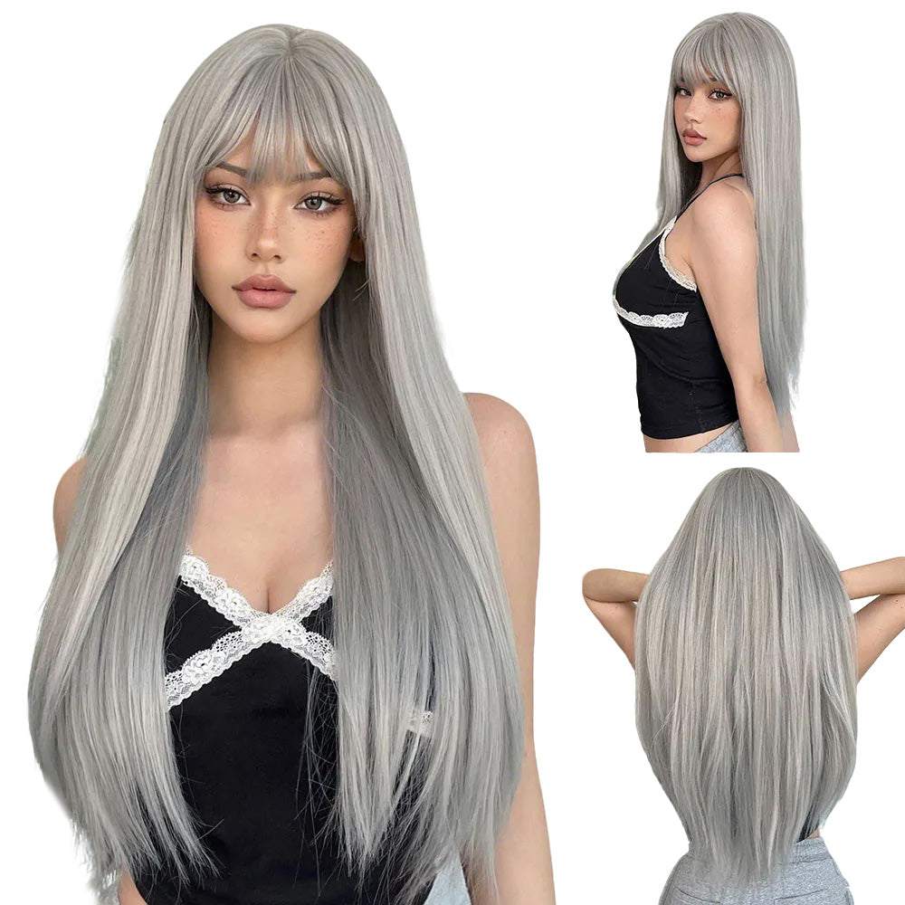 【Fashion Design】This wig with bangs will make you feel like a whole new person when wearing it! Soft and comfortable to wear.