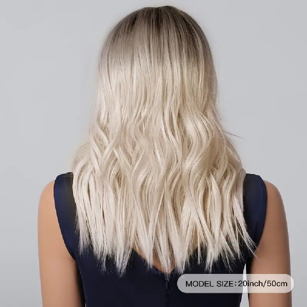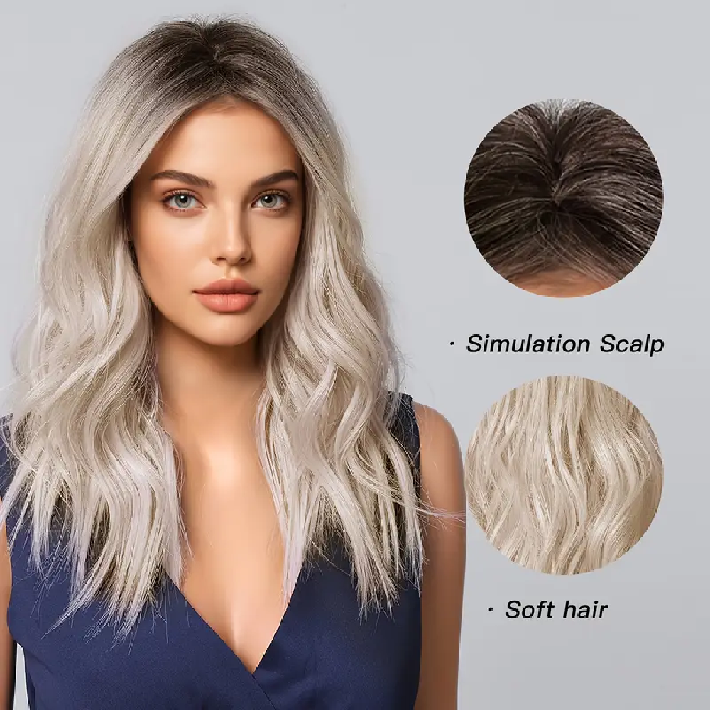 【Brown Blonde Ombre Synthetic Wigs Wavy Layered Wigs With Side Bangs wig style】: 150% density natural wave wig touch more soft and fluffy Feel like human hair and scalp