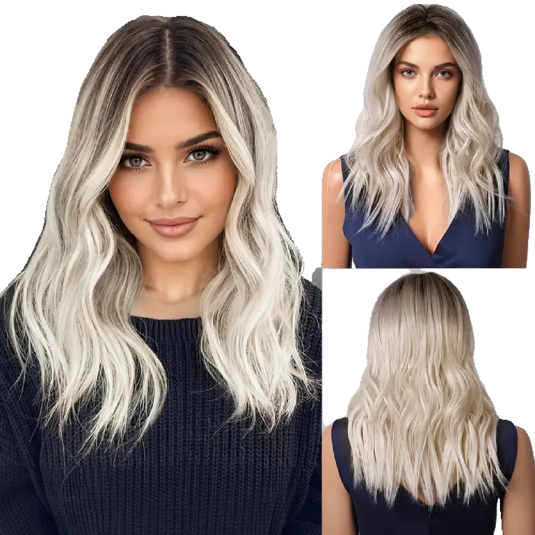 【Upgrade synthetic curly lace wig materia】: This Brown Blonde Ombre Synthetic Wigs Wavy Layered Wigs With Side Bangs wig is made of high quality heat resistant imported soft synthetic fiber; The temperature can be up to 180 ℃ ( 356℉ )