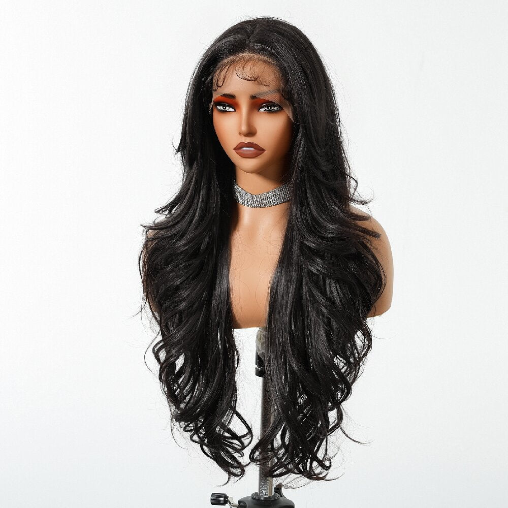 【Black Long Wavy wig style】: 150% density Wavy wig touch more soft and fluffy;Black looks more realistic and excellent; Feel like human hair and scalp; free from harmful substance, bring you more charming