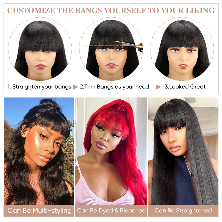 | Lace Wig Type | Human Hair Wig With Bangs |