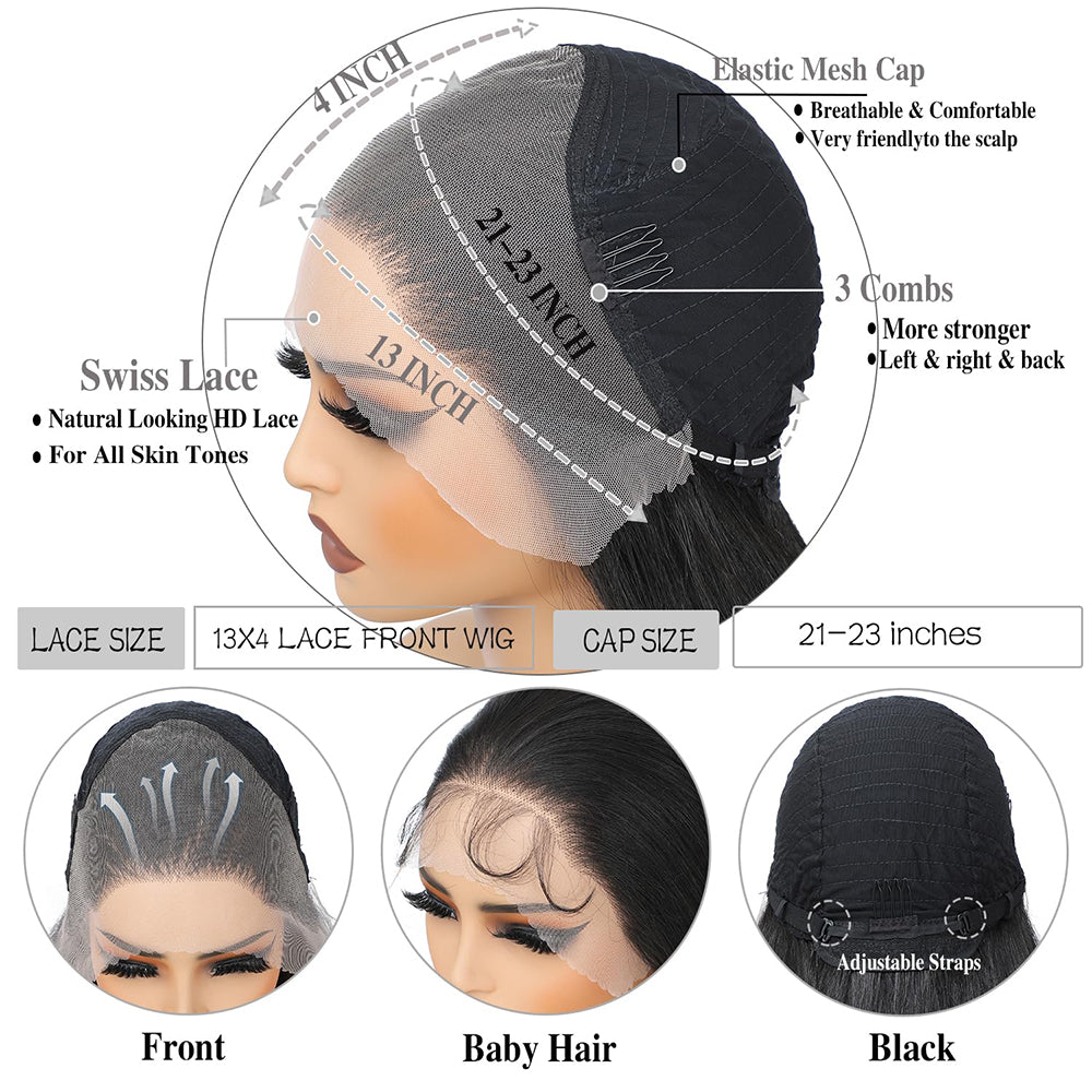 【13x4 Straight Lace Frontal Material】: 100% unprocessed human hair, soft and thick, no shedding and no tangle; Can be bleached, dyed, curled, and straightened.