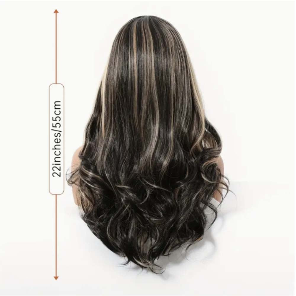 【High-Quality Imitation Human Hair Fibers】: This synthetic lace front wig delivers silky-smooth, straight strands that mimic real hair.